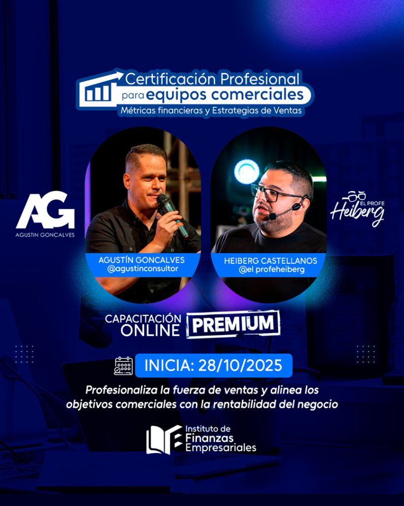 Nuestra promesa: “Vas a dejar de improvisar. Venderás de forma más rentable y consciente, convirtiendo cada estrategia comercial en resultados financieros medibles”.